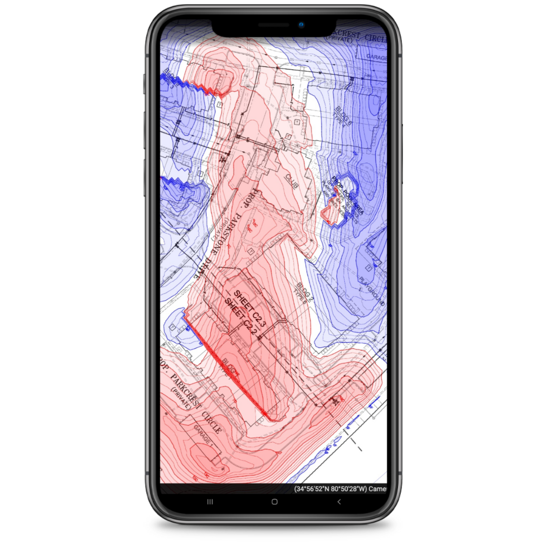 With a GPS-enabled geobrowser, walk the site and see the corresponding location with cut and fill contours, PDF overlays, and more.